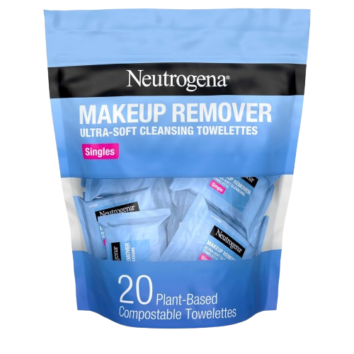 - Pack of 20 individually wrapped moistened Neutrogena Makeup Remover Wipe Singles. Individually wrapped facial towelettes are perfect for on-the-go use. Protected from drying out, you always have a fresh wipe for complete cleansing & makeup removal